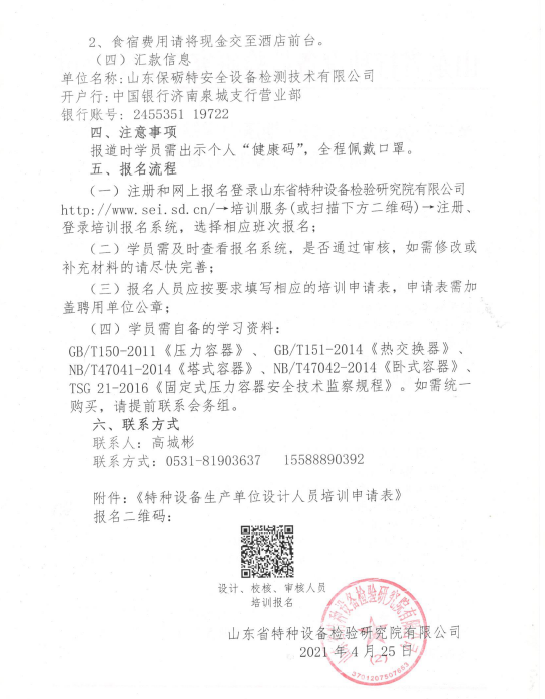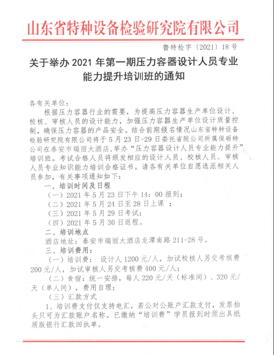 2021年第一期壓力容器設(shè)計(jì)人員專業(yè)能力提升培訓(xùn)班的通知